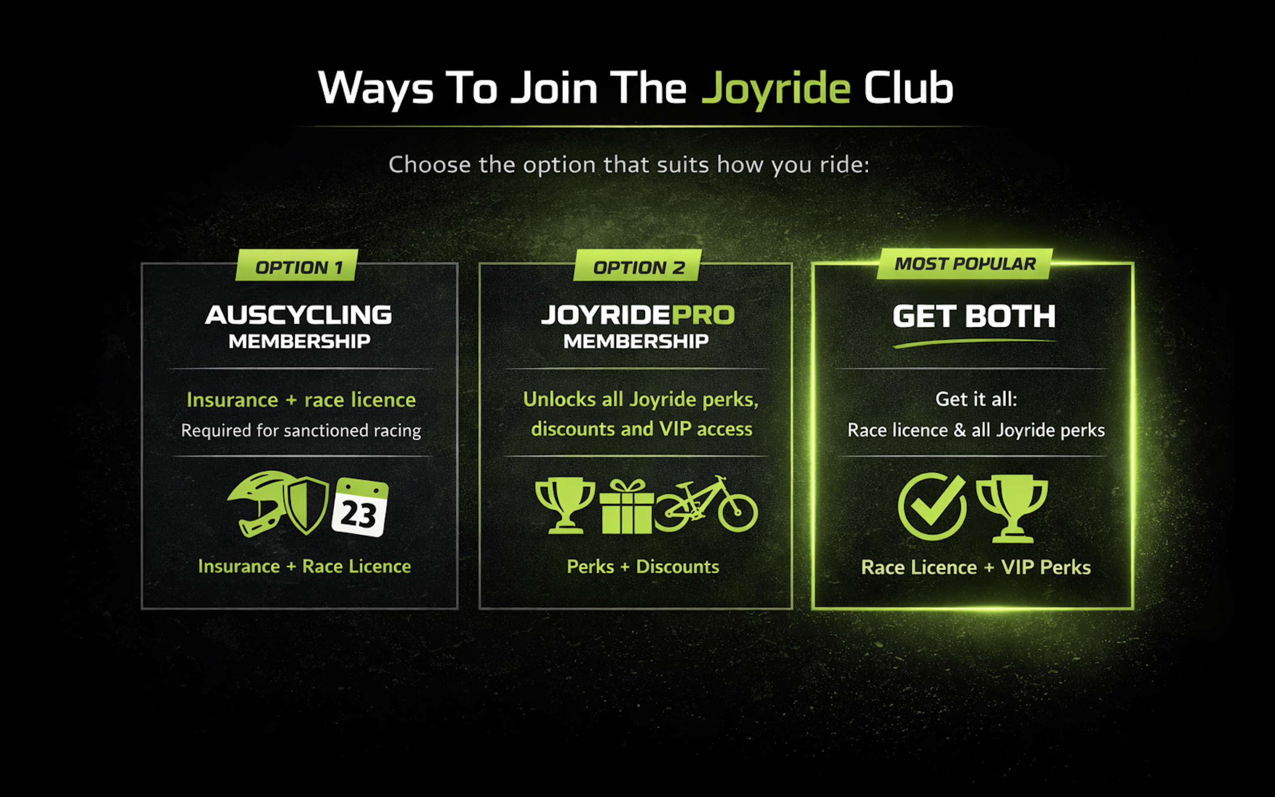 Pro Membership is the premium tier of the Joyride MTB Club, built for riders who want full access to everything we do.